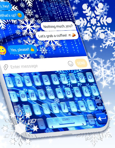 ❤️ You can make a fancy keyboard with blue ice patterns and snowflakes theme on the background!