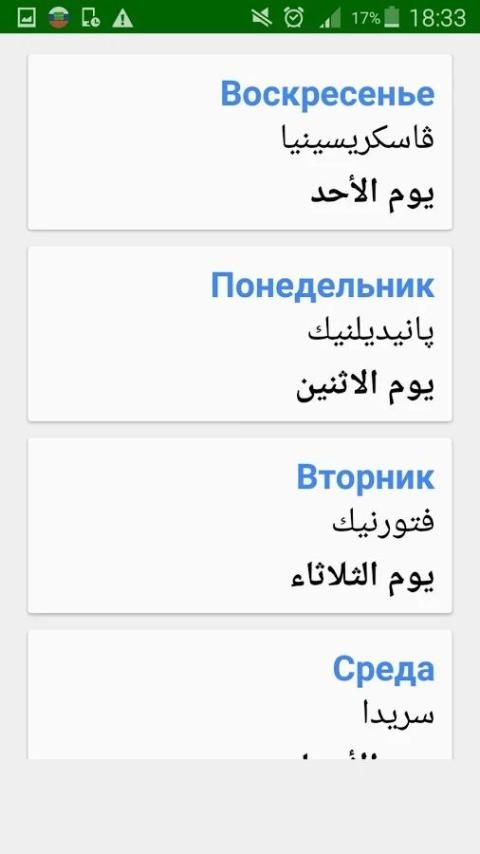 This application contains the most important words in the Russian language translated into Arabic with a method of pronunciation