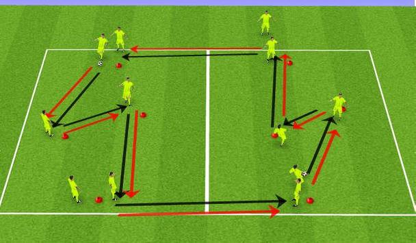 You only need a kit of sports equipment such as cones, pikes, ladders or hoops. You will increase your level of control of the ball with specific training and tactics for all players.