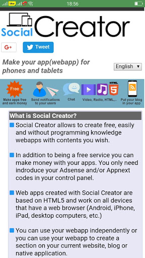 Social Creator allows to create free, easily and without programming knowledge web apps with contents you wish.