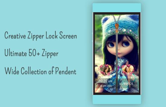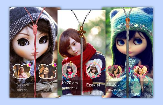 Cute Doll zip lock screen has lots of choice for zipper and pendant over zip. you can customize zip lock as per your need. You can decorate your diy lock screen by placing your photo with an amazing frames with both side of zips on lock screen.