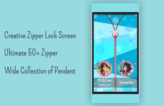 cyan zip lock screen has lots of choice for zipper and pendant over zip. you can customize zip lock as per your need. You can decorate your diy lock screen by placing your photo with an amazing frames with both side of zips on lock screen.
