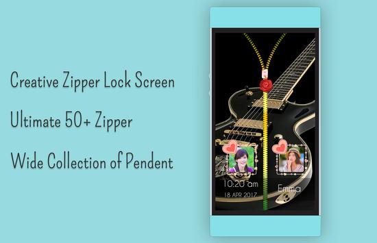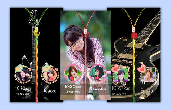 Guitar zip lock screen has lots of choice for zipper and pendant over zip. you can customize zip lock as per your need. You can decorate your diy lock screen by placing your photo with an amazing frames with both side of zips on lock screen.