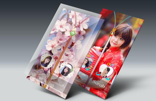 Lots of photo object available to set couple photo in both object. Use objects in creative way with couple photo and it will become couple lock screen with cool zipper locker.