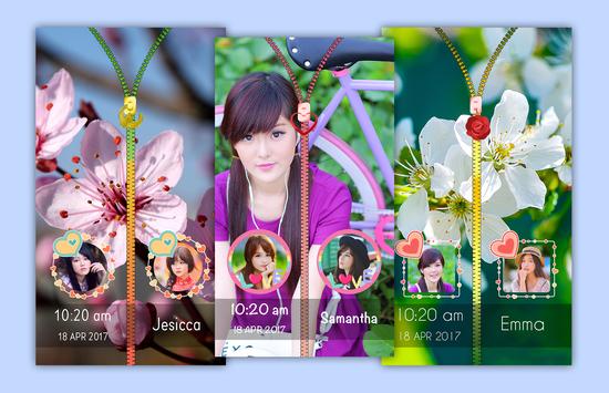 sakura zip lock screen has lots of choice for zipper and pendant over zip. you can customize zip lock as per your need. You can decorate your diy lock screen by placing your photo with an amazing frames with both side of zips on lock screen.