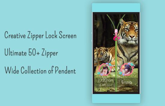 tiger zip lock screen has lots of choice for zipper and pendant over zip. you can customize zip lock as per your need. You can decorate your diy lock screen by placing your photo with an amazing frames with both side of zips on lock screen.