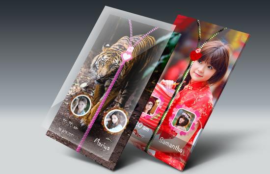 Lots of photo object available to set couple photo in both object. Use objects in creative way with couple photo and it will become couple lock screen with cool zipper locker.