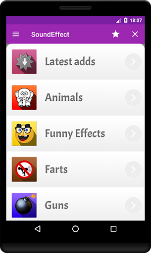 There are hundred of sounds effects to using in your cell phone freely. Keep updated, because new sounds are always inserted. Animals sound; Sirens sound; Games and films sound; Farts sound; And a lot of others...