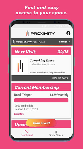 Use the Proximity app with your Proximity-powered coworking space to unlock doors. You can also plan a visit to any Proximity Nomad space right within the app.