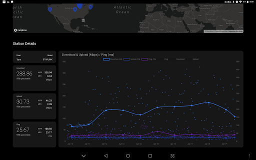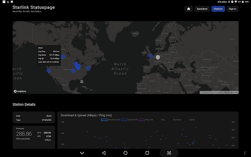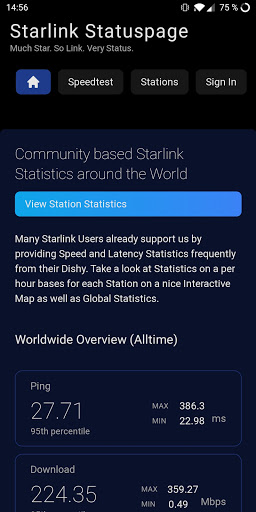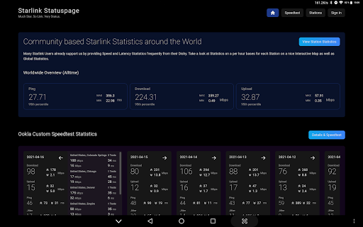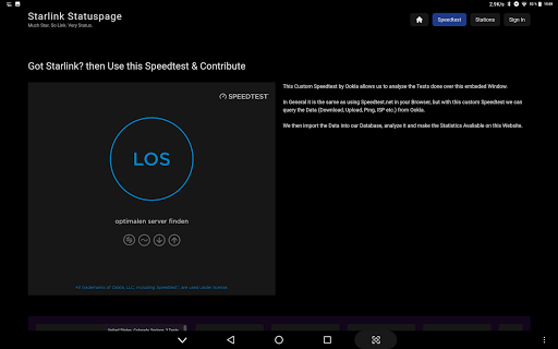 This App allows you to have quick Access to the Starlinkstatus.space Webapp that offers Starlink Statistics that are collected by the Community as well as a Custom Ookla Speedtest that provides Speedtest Data for Us to Analyze.
