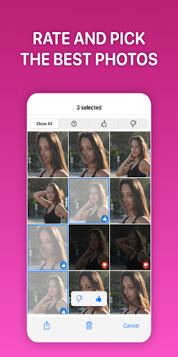 Take your social media presence to the next level! Once you finished taking your photos you can easily rate your pictures within the app that will help you to keep or export the best ones.