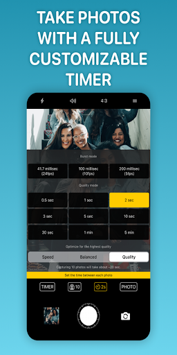 Lens Buddy is a simple yet powerful timer camera app that will take pictures of you and your loved ones without the need to press buttons or even hold the device. Just set your desired time interval between the shots and let the camera roll!