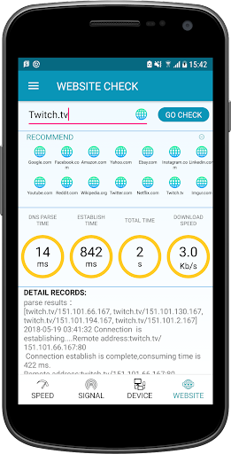 `EX.speedtest` is an internet speed testing and website check tool, it can test speed for your mobile connections including WiFi hotspot, LTE, 4G, 3G networks, check website speed, and check whether your access website are DNS hijacked or not.