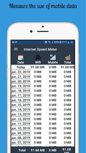 If you were looking for a speed test speed meter, you can trust this, you can start now to perform your Internet speed measurement tests and you can see the daily information of the data or MB used every day.