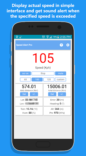 Speedometer Alert is a simple free application that uses GPS to track and monitor your actual speed, distance and give you sound alarm when the specified speed is exceeded.