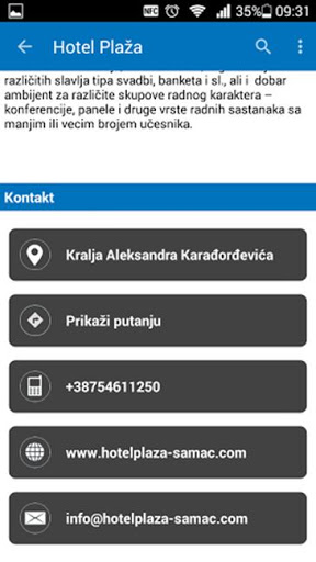 Samac Travel Guide is official Android application of Tourism organization of Samac, which can be downloaded for free and used in offline mode, including maps, thus avoiding roaming costs. Numerous photos, route calculation to all major facilities, contact information about important institutions and emergency services - are some of the reasons for application Samac Travel Guide to become your essential companion.