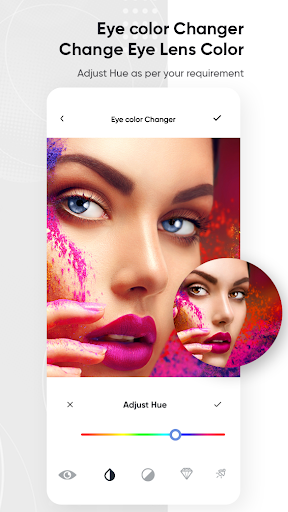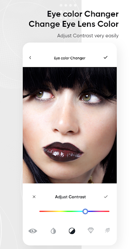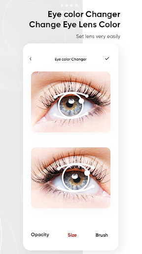 Eye Color Changer Using a unique blending technique creates an effect that looks very natural on the eyes. It works equally well for both dark and light colored eyes. Its very simple simulation app for changing eye color of your choice. you can pick your favorite color or lens among very big list of eye lenses.Free eyes color changer creates natural eyes lens effect.