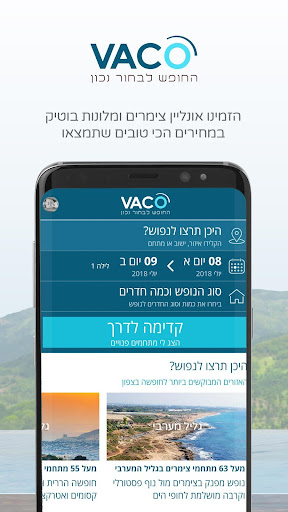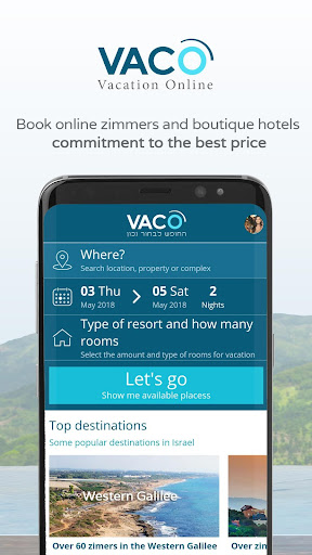 הורידו את אפליקציית VACO שנותנת לכם את החופש לבחור נכון את החופשה הבאה שלכם בצימרים מפנקים בארץ בשקיפות מלאה ובמחירים הטובים ביותר.