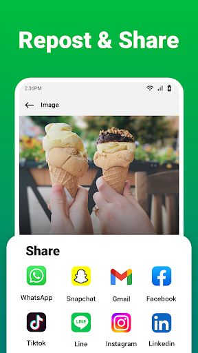 ☆ Share and repost downloaded videos and photos with the Status Saver app.