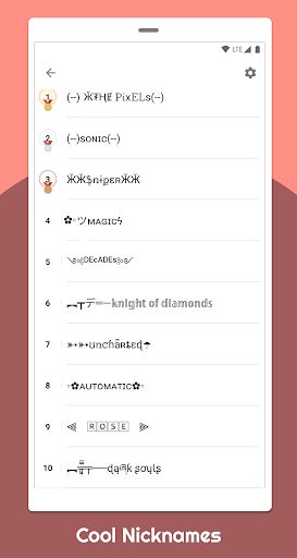 Name style fire can create fancy looking texts and you can share them with your friends. Also as a nickname generator app, it can generate lot’s of nicknames for your game. Just choose one of them and copy and paste anywhere you want.