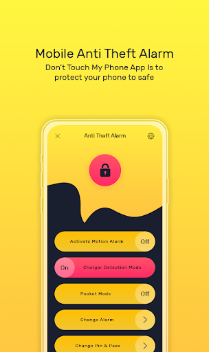 Theft alert on wrong password alert with password protection. Motion detector alarm you with notification alert when at charger removal or burglary detecting. Don't try to touch my phone otherwise you will be red handed with anti touch alarm security or thief catcher app. Motion detector alarm activated at theft activity or mobile stolen and anti crook alarm app ring alarm at dialing wrong password. Turn on or off alarm at wrong password alert or anti touch mobile alarm.