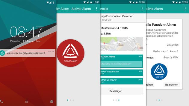 Mit der App können Sie zwei verschiedene Alarmtypen auslösen: einen aktiven oder einen passiven Alarm.
