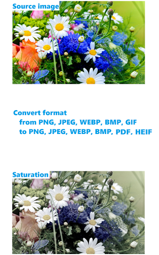 So this app is: image editor, photo editor, image converter, photo converter, photo cutter, image cutter, image resizer, photo resizer, set color balance for photo, set brightness for photo, set contrast for photo, set sharpen for photo, grayscale photo, inverse photo, blur image, blur photo, batch converter, batch editor, old photo, color glass effect, set color channels for image, scale photo, scale image, image to pdf, pdf converter, photo to pdf,