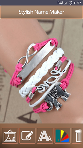 You can make your Name or text in bold and italic styles with Stylish Name Maker HD app. You can furnish your metallic or gold bracelets or tags with your lover name or nickname. You can edit your name to make it colorful select Color Picker and choose your favorite text color and hit ok to save your colorful name on Tags, bracelets, cakes and paper arts. 100 collection of gold bracelets, leather bracelets, wooden bracelets, steel Tags, cakes, paper arts and font styles.