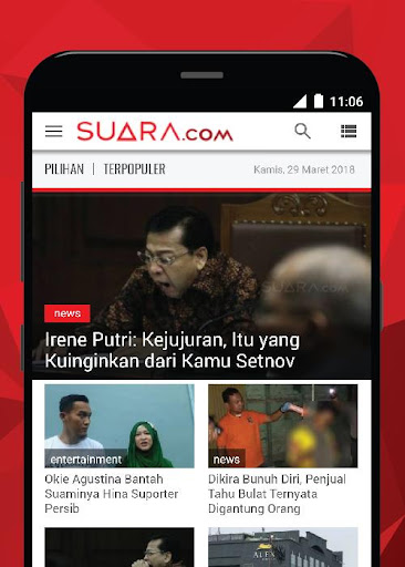 Suaradotcom ist ein Nachrichtenportal, das die heißesten Informationen bietet, sowohl politische, geschäftliche, legale, Fußball, Unterhaltung, Lebensstil, Automobil- und Technologiewissenschaft für den Bürgerjournalismus.Leicht, unkompliziert und ohne Vorurteile gepackt.Informationen werden 24 Stunden dargestellt, können über Desktops, Laptops zu verschiedenen Geräten oder anderen mobilen Geräten genossen werden. Interessen.Ehrlich vermittelt die Fakten so, wie es ist, ohne reduziert oder hinzugefügt zu werden.Ausgeglichen ist es, den gleichen Teil für verwandte Parteien zu liefern, nicht voreingenommen und das Prinzip der Gerechtigkeit bereitgestellt.Unabhängig bedeutet, dass das redaktionelle Management frei von Druck oder Intervention ist.