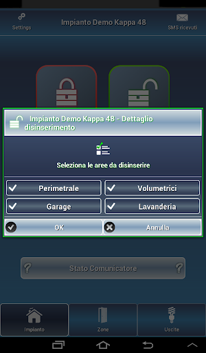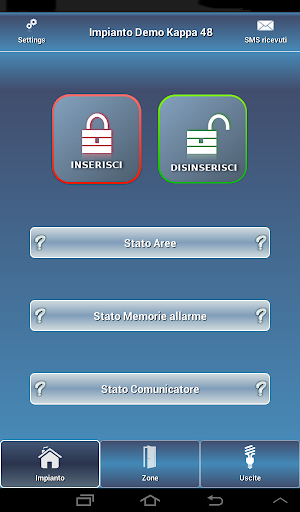 Ciascuna delle suddette operazioni viene gestita dall'applicazione attraverso l'invio di un SMS al comunicatore GSM di cui la centrale è dotato. Ad ogni SMS inoltrato, corrisponderà la ricezione di un SMS di risposta che Remote Security rappresenterà graficamente e memorizzerà nel proprio smartphone.