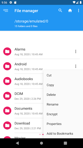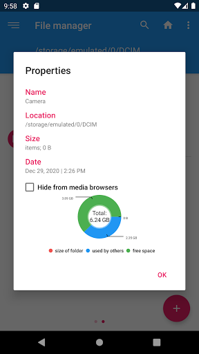 You can always know the storage of your phone, how much used and how much unused. Also, you can browse and edit all folders files by breadcrumb in the top.