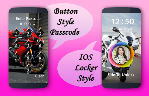 in this app you also set your name with your photo. bike DIY Lock Screen is application to protect your smartphone through using pin/passcode or pattern, no one can enter into your phone without correct four digit password or current pattern.