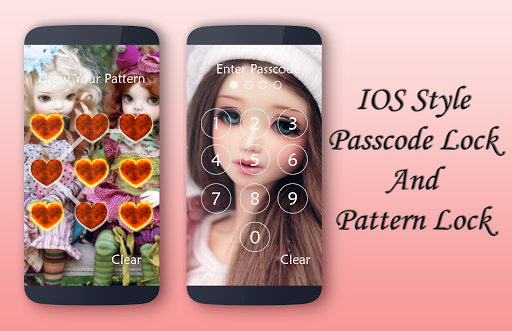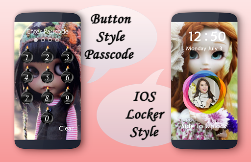 in this app you also set your name with your photo. cute doll DIY Lock Screen is application to protect your smartphone through using pin/passcode or pattern, no one can enter into your phone without correct four digit password or current pattern.