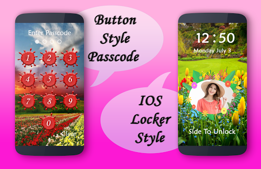 in this app you also set your name with your photo. garden DIY Lock Screen is application to protect your smartphone through using pin/passcode or pattern, no one can enter into your phone without correct four digit password or current pattern.