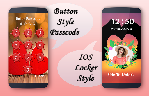 in this app you also set your name with your photo. love heart DIY Lock Screen is application to protect your smartphone through using pin/passcode or pattern, no one can enter into your phone without correct four digit password or current pattern.