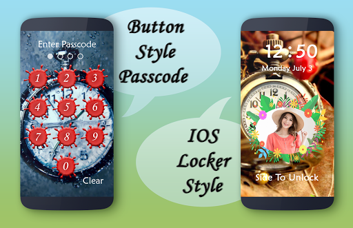 in this app you also set your name with your photo. pocket watch DIY Lock Screen is application to protect your smartphone through using pin/passcode or pattern, no one can enter into your phone without correct four digit password or current pattern.