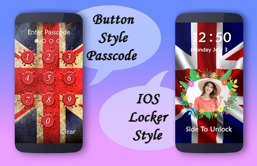 uk flag lock screen application, to help you protect your privacy, prevent others invade your phone illegally