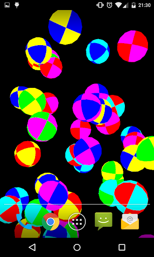 A 3D live wallpaper full of bouncing balls. Different themes and settings available.