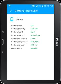 ☼ Battery: Health, current level, power source, temperature, voltage.