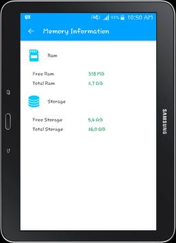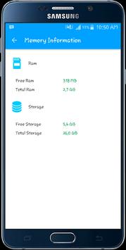 ☼ Memory: Total and available RAM, as well as Storage information about your device.