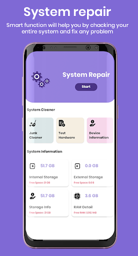 System Repair app analyze your device and safely remove the junk files that take up your memory and storage space and Clean with 1-tap, free up space and boost phone speed. It cleans up your phone's junk files after application get Uninstalled.