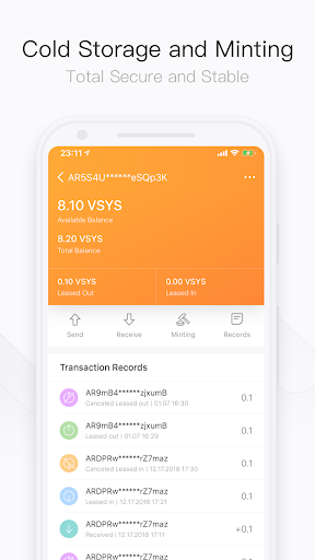 In the VSYS Coin Walk Wallets, users can use their own VSYS Coins to participate in supernode minting, and earn coin rewards through the Supernode Proof-of-Stake mechanism, similar to coin mining. To learn more about supernode minting, visit www.v.systems/supernode.html.
