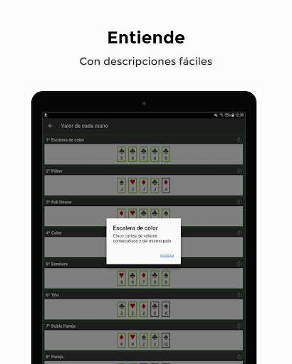 Tanto si quieres aprender a jugar a poker, como si quieres tener donde consultar cualquier duda sobre las reglas de poker durante una partida, ésta es tu app 👍
