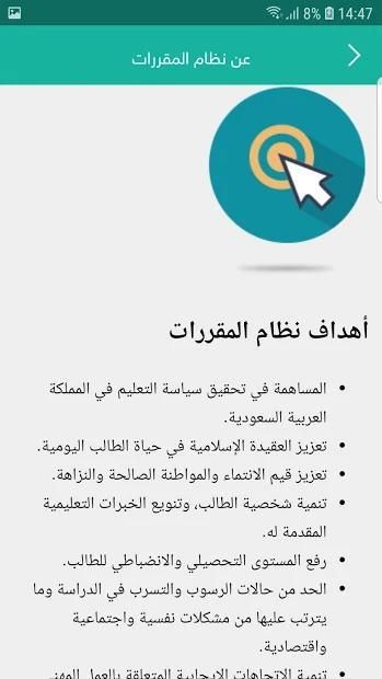 تطبيق نظام المقررات يحتوي علي النقاط التالية،