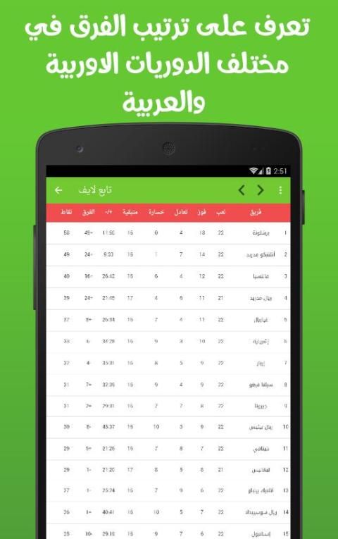 The main interface displays Another difference your news in the Arab leagues and European leagues and Clasico Spanish Kalldora (Alprusa Real Madrid as Atletico Madrid), English Premier League, Serie A, Bundesliga, French League, etc. ... It also displays Arabic periodicals, Moroccan Kalldora (tournament Pro), which includes a big difference from the size of Raja Casablanca and Wydad Casablanca, the Algerian league, which includes in turn, USM team and the Valley of ES Setif and others, the Tunisian league, and also the Tunisian league and where Etoile Sportive du Sahel and Esperance Tunisian sports and CS Sfaxien, as well as the Egyptian, who should not be mentioned without talking about Al-Ahli and Zamalek, as well as Ismaili. The Saudi, the Saudi league covers application which has strong teams a club Ahli Saudi Union as well as victory ... etc.