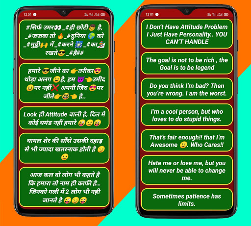 Love attitude status in Hindi has each and every part of the latest attitude quotes with emoji texts. You never get out of status for WhatsApp. This app provides the best attitude status for WhatsApp.