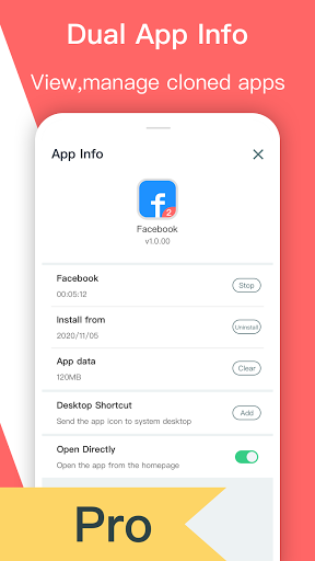 2Accounts Pro has a whole new feature that allow you check the app info and manage the apps.