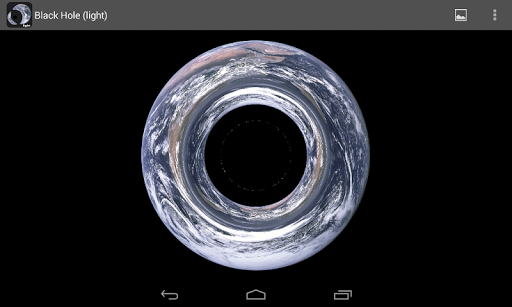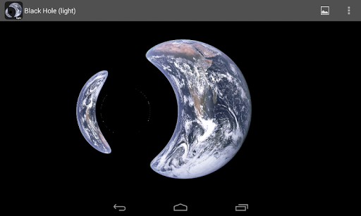 A black hole is the most weird object in the universe. An object that passes behind it appears strongly distorted because of the black hole's influence on light propagation. Turn your smart phone or tablet into a general relativistic simulator and move the black hole around.