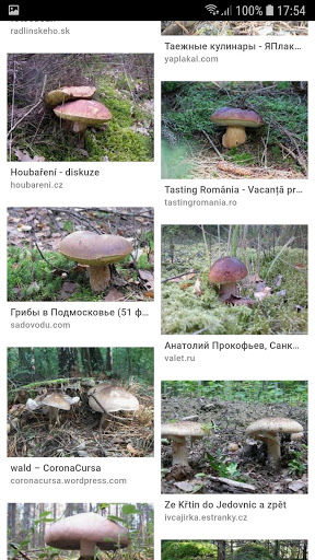The Search By Image app allows you to search images which are similar to a reference image. This is for instance useful for finding plant names, mushrooms, animals, people, products, and other things. The app supports Google, Microsoft Bing, Yandex, and Baidu image search.