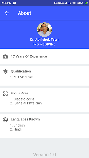 • Video consult instantly or via scheduled appointment with Dr. Abhishek Tater